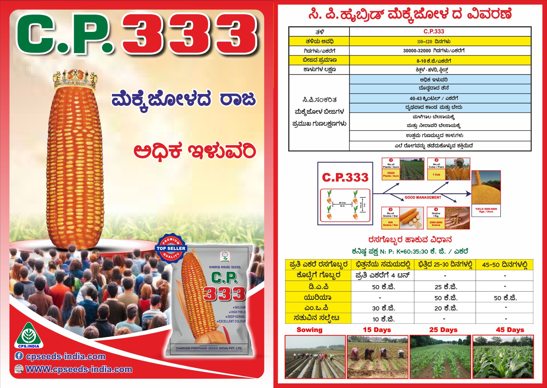 High Yield, Big Ear, Excellent Colour, Deep Kernel, Good Stalk & Root System